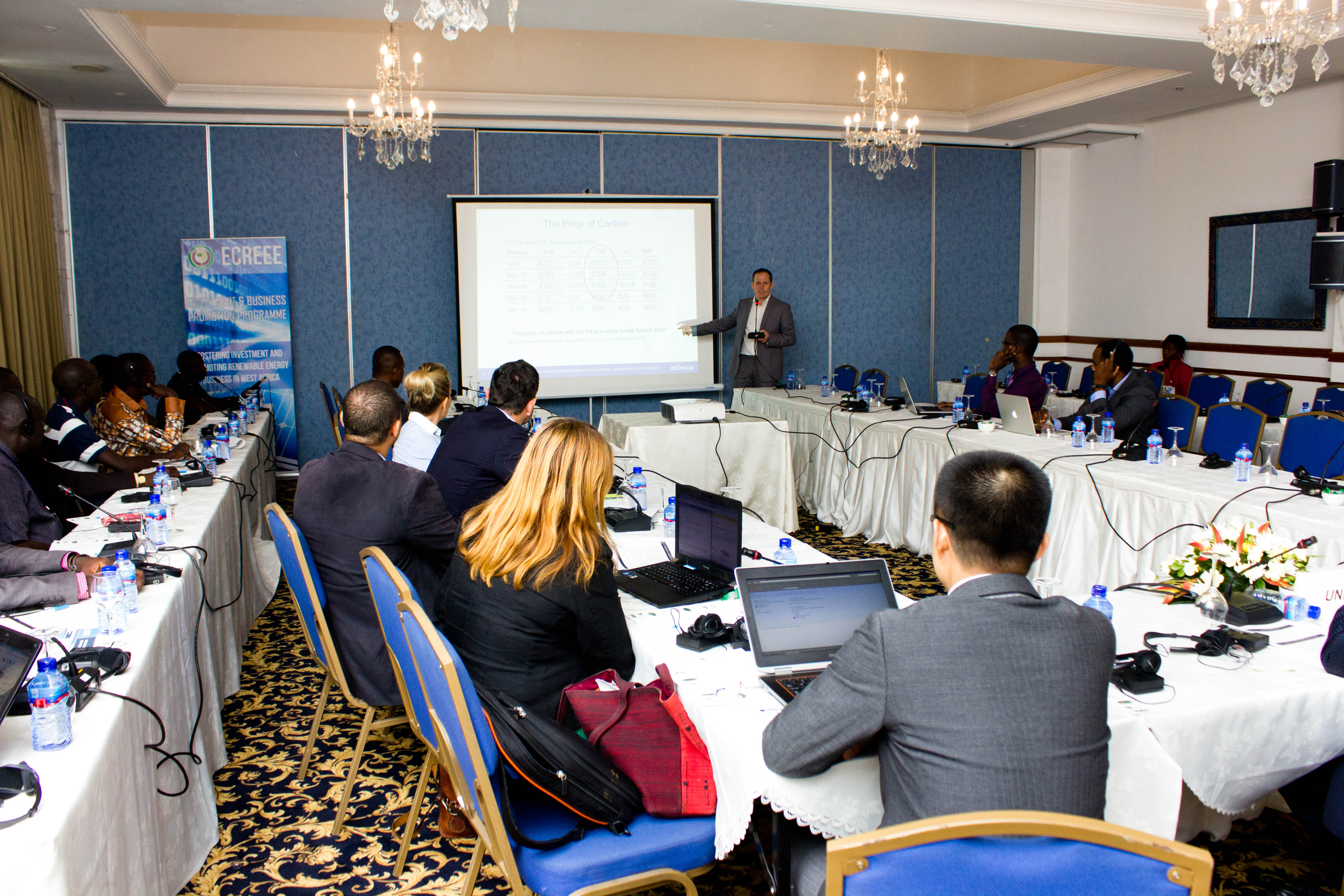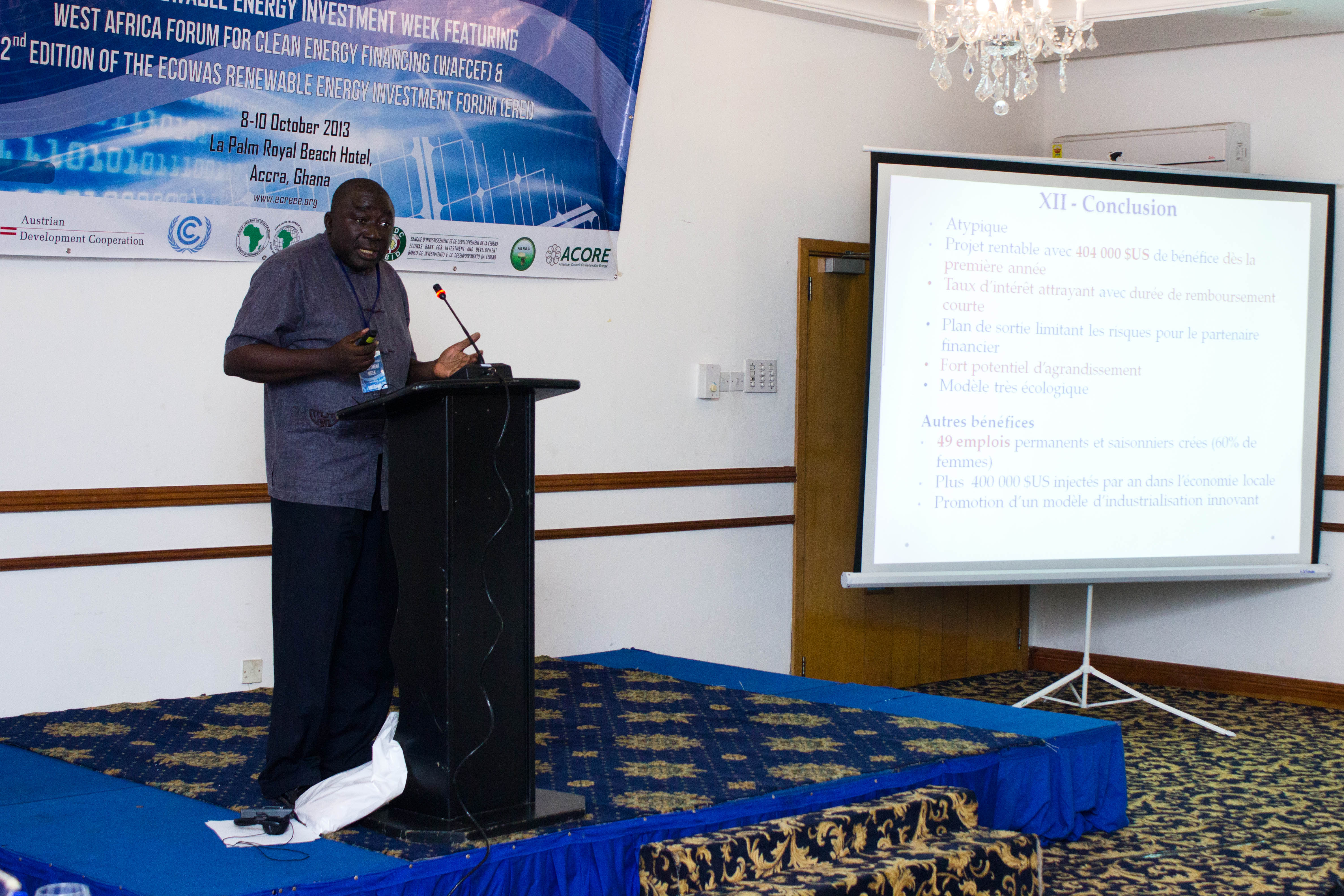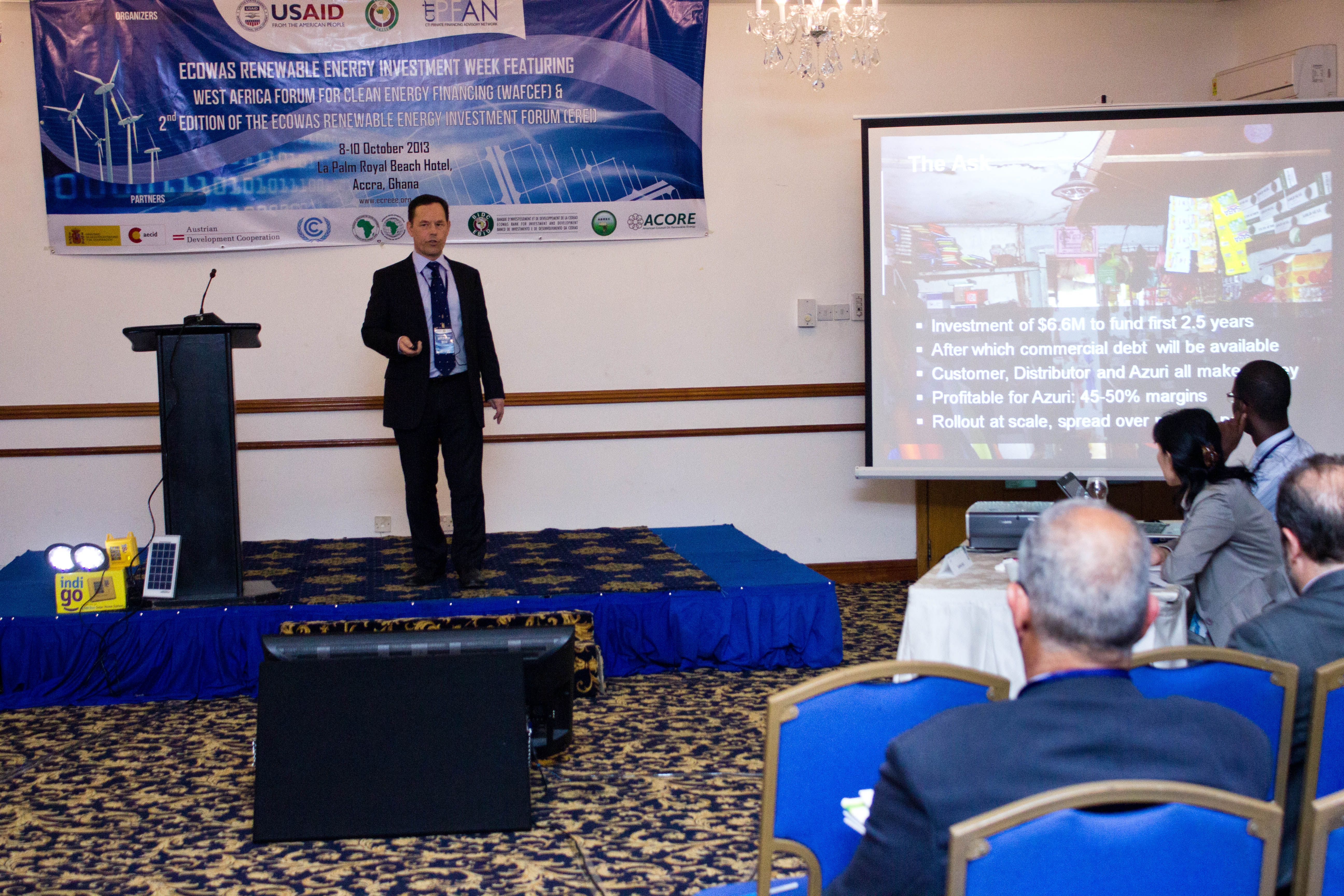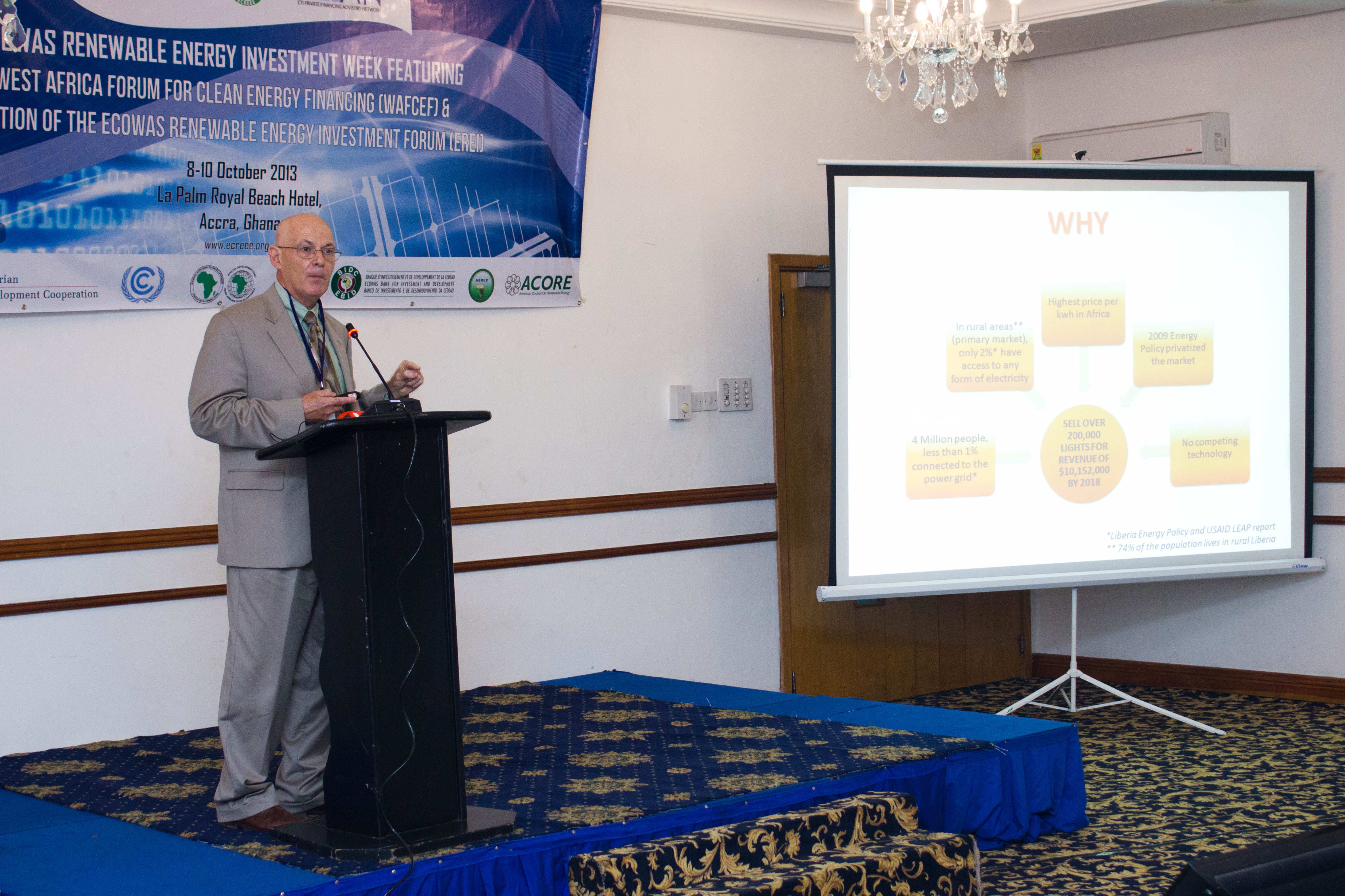 Accra, Ghana – October 8th -10th, 2013 - The ECOWAS Centre for Renewable Energy and Energy Efficiency (ECREEE), in collaboration with the USAID Regional Clean Energy Initiative, the Climate Technology Initiative-Private Financing Advisory Network (CTI-PFAN), the Regional Collaboration Centre of the United Nations Framework Convention on Climate Change (UNFCCC-RCC), the African Development Bank (AfDB), the ECOWAS Bank for Investment and Development (EBID), the West African Development Bank (BOAD), and the African Biofuel and Renewable Energy Company (ABREC) organized the ECOWAS Renewable Energy Investment Week, featuring the West African Clean Energy Finance Forum and the ECOWAS Renewable Investment Forum.