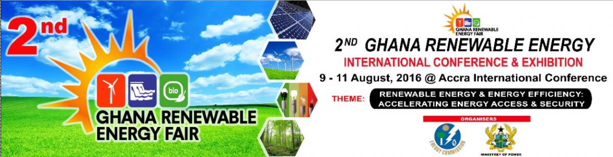The Energy Commission is organizing the 2nd Ghana Renewable Energy Fair (Conference and Exhibition) from 9th – 11th August, 2016 at the Accra International Conference Center (AICC) under the theme “Renewable Energy and Energy Efficiency (RE&EE): Accelerating Energy Access and Security”. The conference will run concurrently with the exhibition over the 3 days.