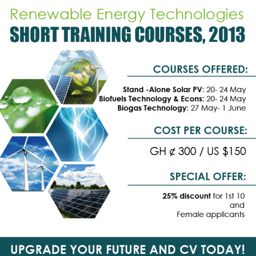 As part of its contribution to building national and sub-regional capacity in developing sustainable energy systems, The Energy Center (TEC) of the Kwame Nkrumah University of Science and Technology (KNUST) Kumasi, Ghana, is organising the next series of regular short courses in renewable energy in...