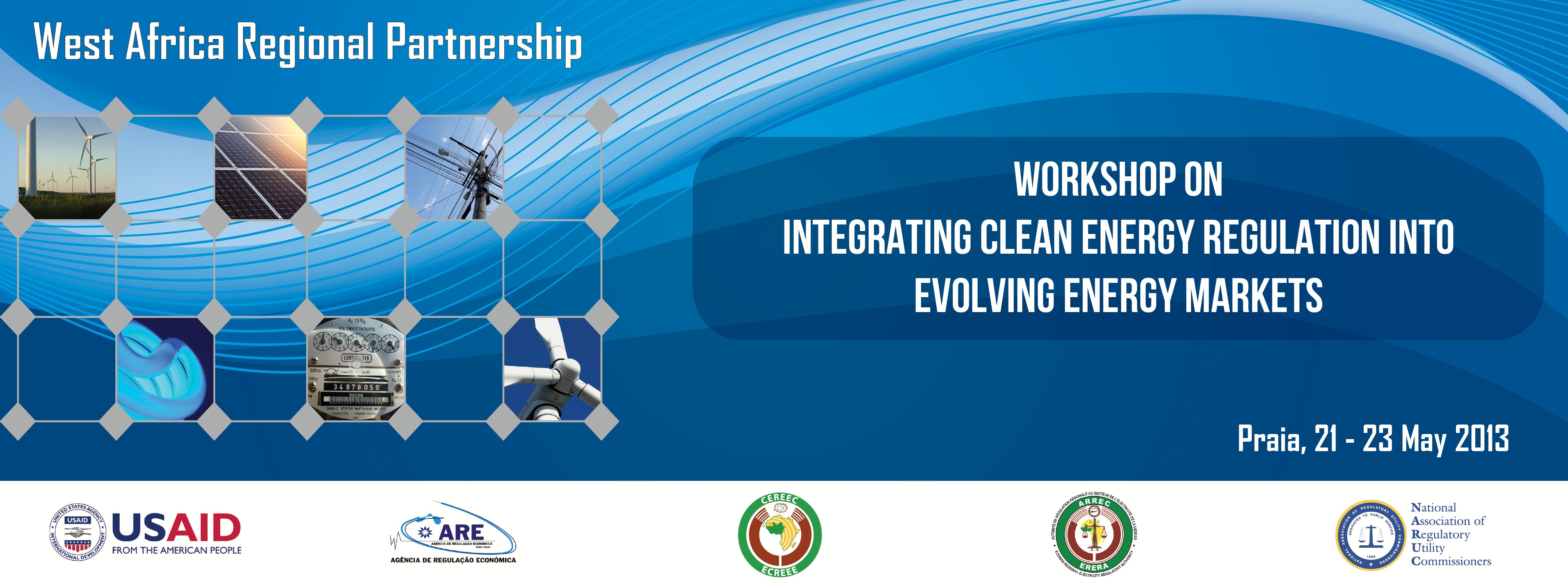O Centro para as Energias Renováveis e Eficiência Energética da CEDEAO (ECREEE) a Associação Nacional dos Comissários de Regulação de serviços públicos (NARUC), a Agência Cabo-verdiana de Regulação Económica (ARE), a autoridade reguladora Regional do sector da electricidade da CEDEAO (ERERA) estão a organizar conjuntamente um seminário técnico sobre regulamentação e política de Energia Limpa no âmbito de uma parceria Regional com a África Ocidental, financiado pela Agência dos Estados Unidos para o Desenvolvimento Internacional (USAID). O workshop está programado para ter lugar na cidade da Praia, Cabo Verde, a partir de 21 a 23 de Maio de 2013.
