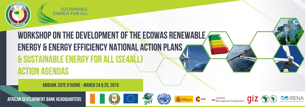 (ECREEE secretariat 06 March 2015 - Closed Event) - The ECOWAS Centre for Renewable Energy and Energy Efficiency (ECREEE) and its partners are jointly organizing a working meeting on the development of the ECOWAS Renewable Energy & Energy Efficient National Action Plans and SE4ALL Action Agendas will take place from the 24 – 25 March, 2015 in Abidjan, Cote D’Ivoire.